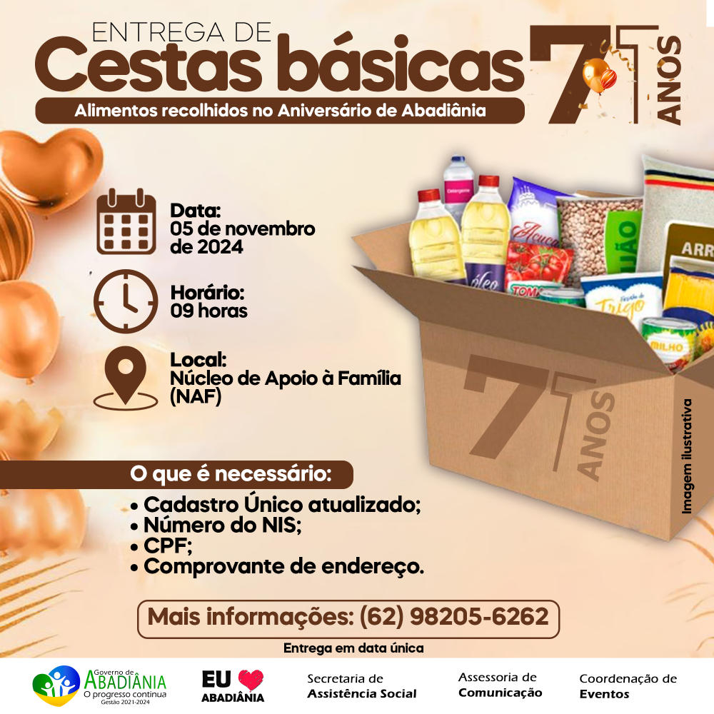 Abadiânia completou 71 anos com uma comemoração especial que resultou na arrecadação de alimentos para quem mais precisa. Nesta terça-feira (05), cestas básicas foram entregues a famílias carentes, graças à parceria entre a Prefeitura e a Secretaria de Assistência Social.