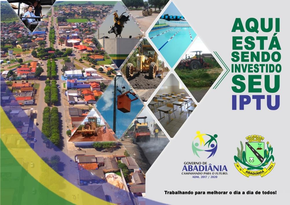 Seu IPTU está sendo investido onde mais precisa! Pague sua cota única e garante 10% de desconto até o dia 30 de Abril. #governodeabadiânia #iptu2018